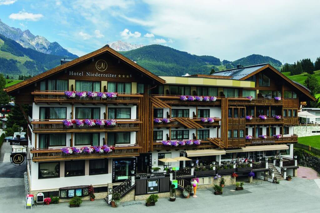 Umgeben vom Steinernen Meer und den sanften Pinzgauer Grasbergen verwöhnt das Hotel Niederreiter seine Gäste. Nach umfassender Sanierung in Zusammenarbeit mit der Zimmerei Hirschbichler und Dämmstoff-Profi Steinbacher startete es frisch renoviert in die neue Saison.