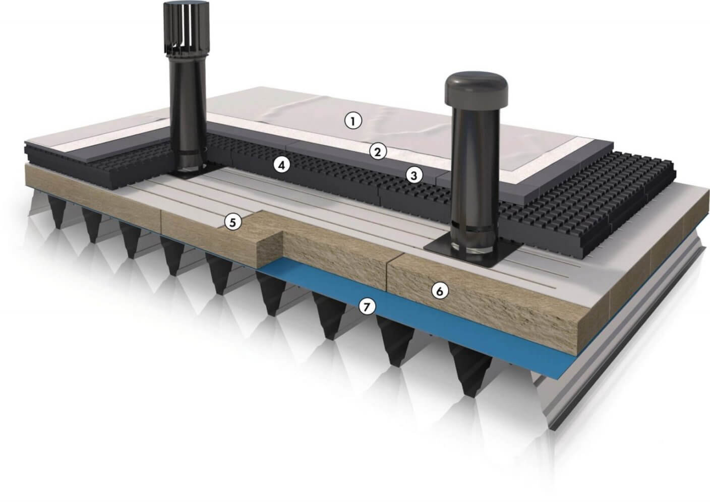 Flachdächer gehören zu den am stärksten belasteten Bauteilen im Hochbau, Feuchteschäden sind vermehrt anzutreffen. Sei es aufgrund einer gealterten Dachabdichtung oder von Niederschlag während der Bauphase. Zur Sanierung feuchtebelasteter Flachdächer ist nach aktuellem Stand der Technik ein Rückbau der Schichten bis zur Dampfsperre erforderlich. Anschließend ist der Dachaufbau wieder neu herzustellen. Durch das neu entwickelte Sanierungssystem ist es nun möglich, die Nutzungsdauer der Materialien des bestehenden Dachaufbaues zu erlängern. Ein kostenintensives Entsorgen von Altmaterialien gehört somit der Vergangenheit an.